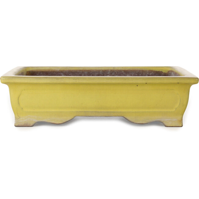 Rechthoekige gele bonsaipot van Yamaaki Toshio (derde generatie) - 375 x 300 x 98 mm