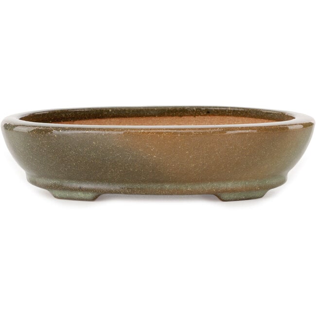 Ovale bruin-witte bonsaipot met craquelé-effect van Hattori - 225 x 170 x 50 mm