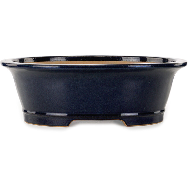 Ovale donkerblauwe bonsaipot van Seizan (Reihou, Kataoka Katsushi, meester Seizan oven) - 476 x 404 x 150 mm