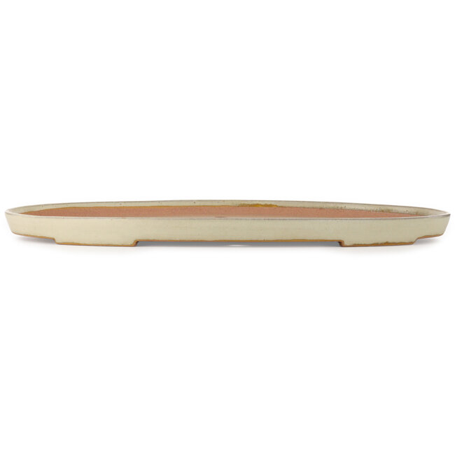 Oval beige bonsai pot by Seizan (Reihou, Kataoka Katsushi, master Seizan kiln) - 495 x 420 x 100 mm
